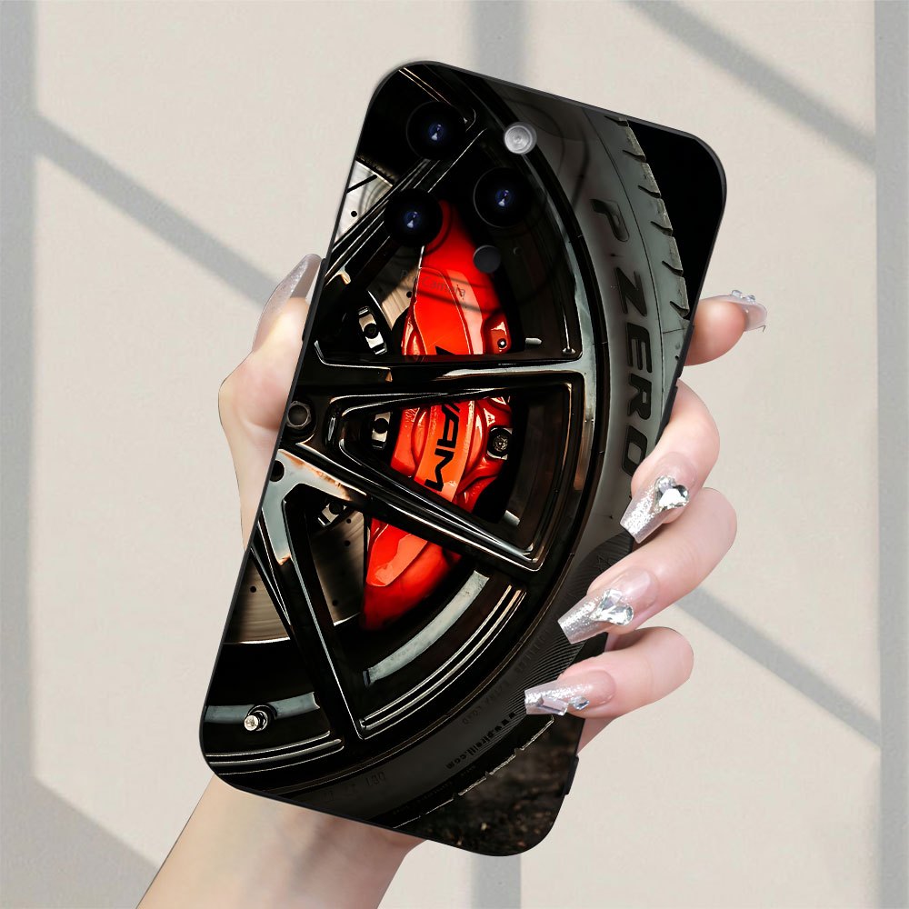 Husă premium iPhone  cu efect 3D roată AMG. Protecție completă și design sportiv inspirat din Mercedes AMG.